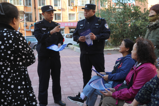 聚焦老年群体防范能力较弱的特点,道外分局南直派出所组织民警携带反诈宣传彩页,深入老年人口较多的社区,将安全知识送到居民家门口。在社区内,民警通过发放宣传彩页、设置咨询台、互动答疑等形式,向居民系统宣传防范电信网络诈骗的相关知识。