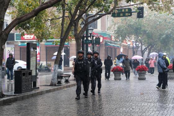 “各位游客,路面湿滑,请小心慢行!”大雪纷飞,中央大街的欧式建筑更添浪漫,巡逻民警穿梭在老街的各个角落,他们及时搀扶行动不便的老人,耐心为游客指引路线。冰天雪地中,他们的藏蓝身影成为这条百年老街上最令人心安的风景线。