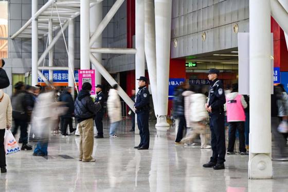 结合演唱会返程客流量大和气温骤降的情况,公交分局联合运营企业对地铁出入口、安检口、闸机等重点部位实施“定点定人定岗定责”,科学布置警力,分时段采取“视频巡查+动态巡逻+重点值守”方式,按照“1分钟响应、3分钟处置、5分钟增援”标准开展巡逻防控。同时,在地铁会展中心站设置隔离铁马100个,指导车站在站外设置缓冲区,引导观众分批进站,站内则通过提示标识划分行进路线,让人流自然分流。