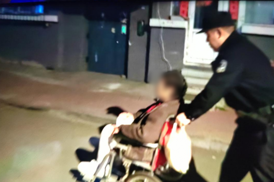 10月19日18时许,新建派出所巡逻民警在哈尔滨工程大学附近巡逻时,遇到一位老人求助。老人因行动不便,轮椅卡在斜坡上无法前行。巡逻民警立即上前接过轮椅,一路推扶护送老人安全返家。途中,老人多次紧握民警的手表达感谢:“这么冷的天气,你们还主动帮忙,真是咱老百姓的贴心人!”