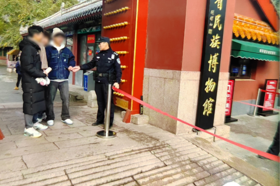 10月18日14时许,新建派出所巡逻民警在黑龙江省民族博物馆(文庙)开展巡逻时,发现几名游客在建筑前反复徘徊、面露困惑。巡逻民警主动上前询问得知,这批外地游客首次到访哈尔滨,对文庙的历史文化、建筑特色及参观路线一无所知。凭借对辖区人文资源的深入了解,执勤民警化身“文化向导”,从文庙的儒家文化渊源、建筑布局到参观动线,为游客进行了详细讲解。游客们感慨:“冰城公安不仅守护安全,还让我们读懂了这座城市的文化密码!”