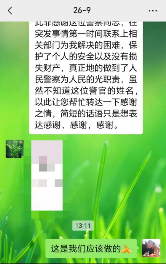 10月20日,南直派出所辖区红旗小区一居民在微信群中向民警求助,称其家中暖气水管破裂,但自己独自一人在家难以妥善处置,急需民警帮助。接到求助后,民警邓旭迅速联系供暖部门,第一时间将供暖水阀关闭,避免了群众遭受财产损失。