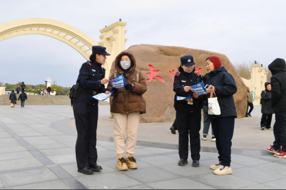 在广场、公园和景区景点,道里分局、松北分局组织民警开展流动宣传,将印有典型诈骗案例的手册和印着“不轻信、不转账”醒目标语的环保袋送到老人手中,用亲切叮嘱织密街头巷尾的“反诈防线”。