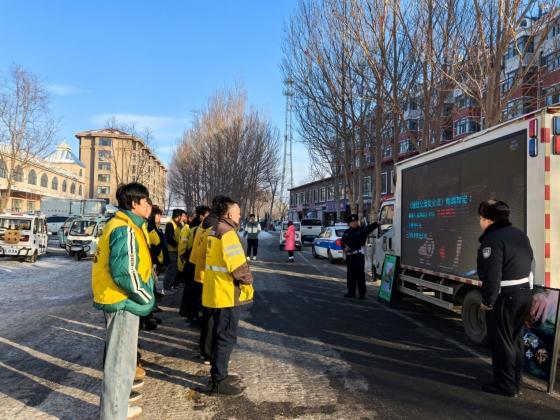 “各位司机师傅,冰雪路面请一定减速慢行!”在各运输企业,民警正面对面开展冬季交通安全警示教育。随着持续降雪天气的到来,通河县道路积雪结冰现象增多,给群众出行带来不便。为保障道路交通安全,哈尔滨市通河县公安局全警动员、多管齐下,扎实开展冬季交通安全宣传工作,以实际行动守护群众出行平安。