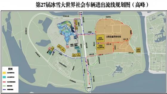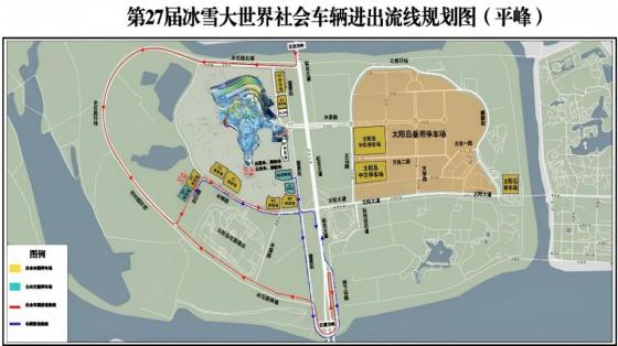 冰雪大世界开园期间,园区周边交通流量较大,建议游客合理规划出行时间,错峰前往;选择公共交通工具的游客请关注班次信息,有序乘车;自驾游客请遵守交通规则,切勿违法停车、强行变道。让我们携手共建安全、畅通、有序的交通环境,共同畅享冰雪盛宴!