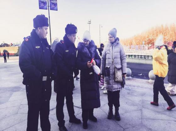 当日15时,分局执勤民警巡逻时发现两位外国游客在地铁站附近焦急徘徊,可能需要帮助。发现情况后,民警立刻上前,通过手势与翻译软件辅助交流。得知游客正在寻找园区入口后,民警带着游客步行数百米来到地铁站入口,路上,民警还主动向游客介绍起了游玩路线与取暖场所。勤务期间,面对游客络绎不绝的咨询求助,执勤民警用耐心解答与热情服务来为大家排忧解难,收获了广大市民游客的一致好评。