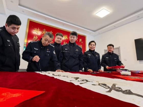 为深入贯彻落实文化育警、从优待警方针,激励全警在新的一年忠诚履职、锐意进取。1月5日,在第六个“中国人民警察节”即将到来之际,通河县公安局精心组织本局具有深厚书法造诣的警营书法家,走进县看守所、富强派出所,开展“书法艺术进基层 笔墨丹青润警心”现场创作交流活动,为坚守一线的同志们送去了一道丰盛的文化大餐。