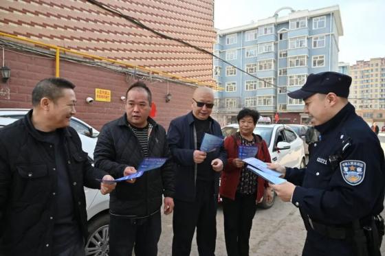 民警赵赫(右一)向群众进行反诈宣传