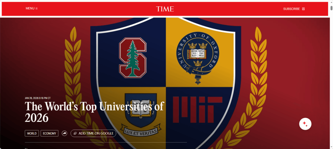 近日,美国TIME(时代周刊)联合数据巨头Statista发布了备受瞩目的“2026年全球最佳大学排名” (World’s Top Universities of 2026)。